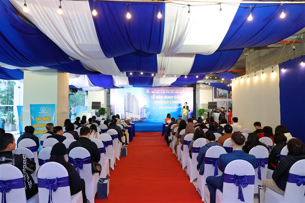 Phát biểu tại lễ bàn giao, đồng chí Lê Thị Hương, Thành viên Hội đồng thành viên, Phó Tổng Giám đốc HANDICO cho biết: Liên danh Chủ đầu tư xác định việc bàn giao căn hộ đúng tiến độ, bảo đảm chất lượng là trách nhiệm đối với khách hàng và cộng đồng. Công trình được triển khai với các yêu cầu nghiêm ngặt về kỹ thuật, mỹ thuật, tuân thủ quy hoạch, sử dụng vật liệu đạt tiêu chuẩn an toàn, hướng tới hình thành không gian sống hiện đại, đồng bộ tiện ích, đáp ứng nhu cầu an cư lâu dài của cư dân.