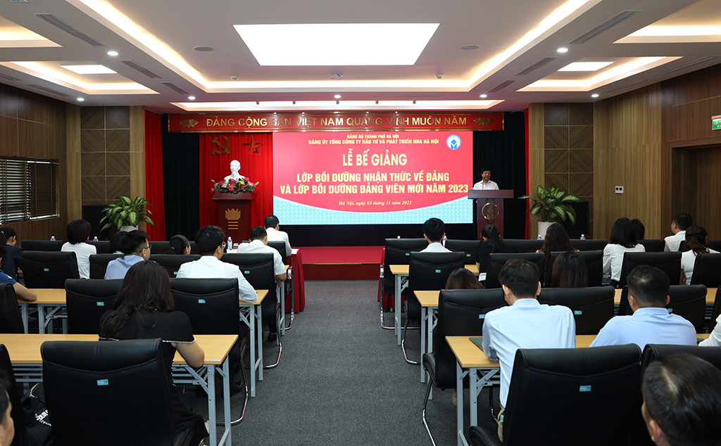 Thực hiện kế hoạch đào tạo và kế hoạch phát triển đảng viên, bồi dưỡng đảng viên mới năm 2023, Đảng ủy Tổng công ty Đầu tư và Phát triển nhà Hà Nội tổ chức mở lớp bồi dưỡng nhận thức về Đảng và lớp bồi dưỡng đảng viên mới năm 2023 cho 63 học viên của các chi, đảng bộ cơ sở trực thuộc Đảng bộ Tổng công ty.