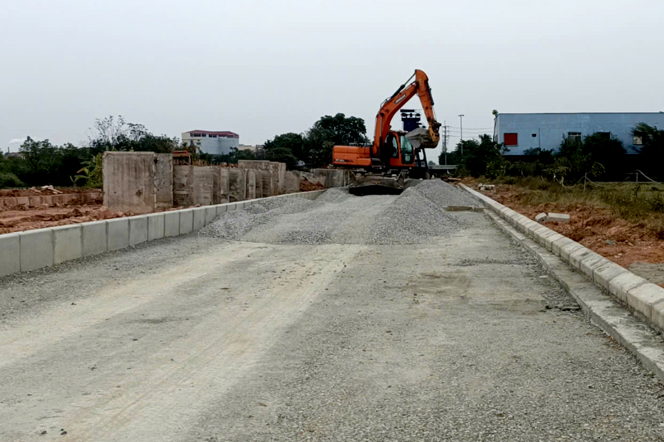 Tại Tuyến đường 48m đoạn từ Yên Vinh đến đường 36 Khu công nghiệp Quang Minh, huyện Mê Linh, Hà Nội, HANDICO đã thi công cơ bản xong phần nền đường và hạ tầng kỹ thuật (hệ thống hào kỹ thuật, cống và hố ga các loại, bó vỉa), chuẩn bị thi công thảm bê tông asphalt mặt đường.