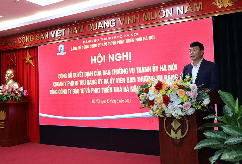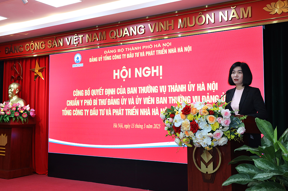 (HANDICO) – Ngày 13/3/2025, Đảng ủy Tổng công ty Đầu tư và Phát triển nhà Hà Nội (HANDICO) tổ chức Hội nghị công bố quyết định của Ban Thường vụ Thành ủy Hà Nội chuẩn y Phó Bí thư Đảng ủy, Ủy viên Ban thường vụ Đảng ủy Tổng công ty Đầu tư và Phát triển nhà Hà Nội. Đồng chí Phùng Thị Hồng Hà – Ủy viên Ban Thường vụ Thành ủy, Phó Chủ tịch thường trực HĐND Thành phố Hà Nội đã tới dự và trao quyết định.