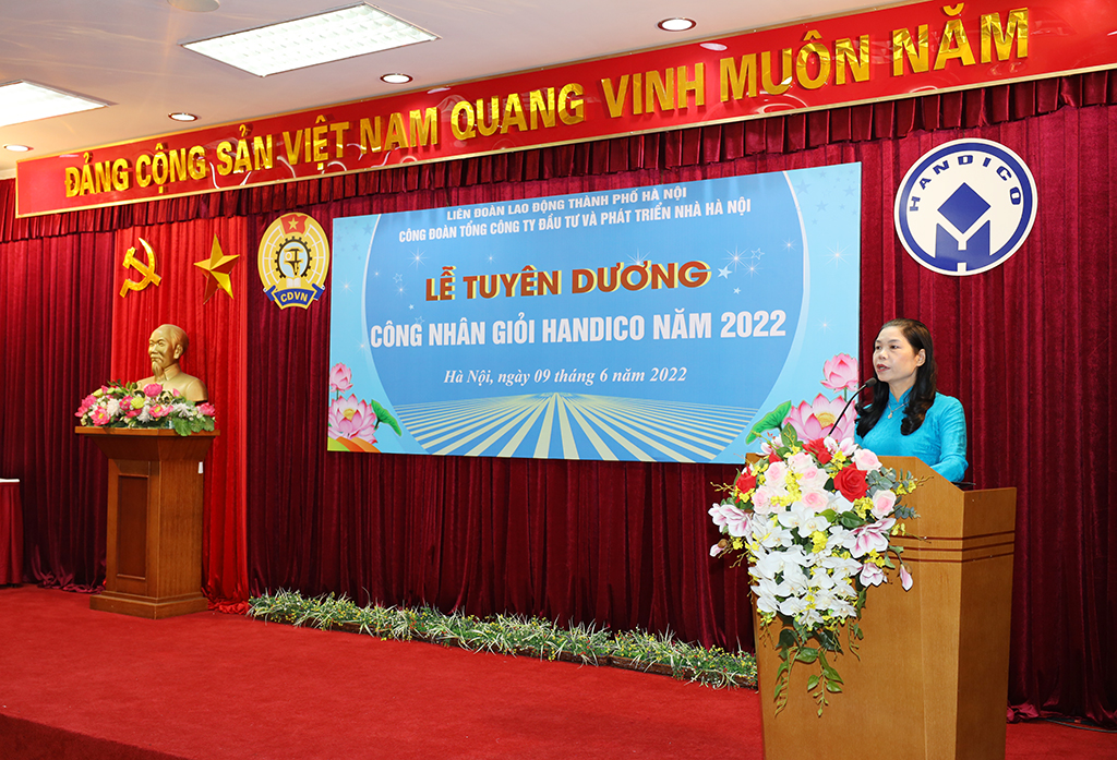 Phát biểu tại Lễ Tuyên dương, đồng chí Đặng Thị Phương Hoa - Phó Chủ tịch Thường trực Liên đoàn Lao động Thành phố đã biểu dương, đánh giá cao Công đoàn Tổng công ty cùng các Công đoàn cơ sở đã luôn chủ động tổ chức, phát động, triển khai sâu rộng các phong trào thi đua yêu nước trong công nhân lao động, các phong trào đều hướng vào việc động viên người lao động tích cực rèn luyện, nâng cao trình độ tay nghề, kỹ năng lao động để đạt được năng suất, chất lượng, hiệu quả cao, xây dựng thương hiệu sản phẩm của doanh nghiệp, thực hiện hoàn thành nhiệm vụ của đơn vị và của Tổng công ty.