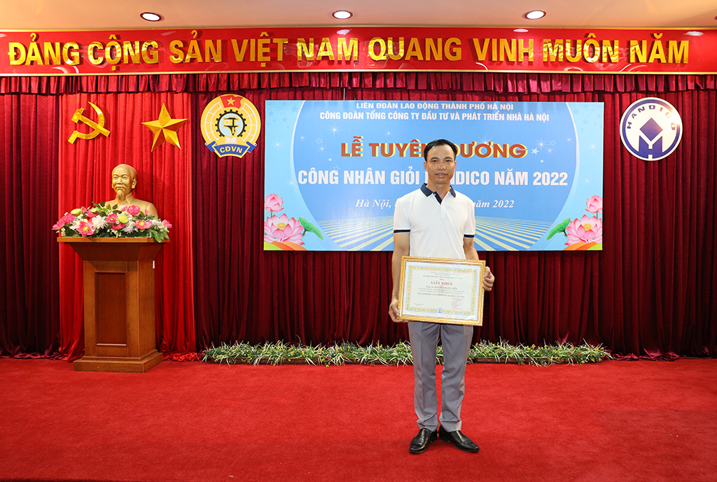 Từ hơn 2.500 công nhân viên lao động đạt các danh hiệu lao động giỏi, lao động tiên tiến, chiến sĩ thi đua, lao động xuất sắc tại các doanh nghiệp thuộc Tổng công ty, Công đoàn HANDICO đã xét chọn được 35 cá nhân tiêu biểu xuất sắc có nhiều thành tích trong lao động, sản xuất để khen thưởng, tặng danh hiệu “Công nhân giỏi HANDICO” năm 2022. Đó là những người thợ điện nước, công nhân sửa chữa, công nhân kỹ thuật, thợ nề, thợ sơn bả; những người lái xe, vận hành thiết bị, công nhân đo đạc, người nấu ăn, nhân viên vệ sinh, nhân viên bảo vệ, những người công nhân áo xanh trực tiếp sản xuất với những thiết bị, máy móc, dụng cụ làm việc trong xưởng máy, trên công trường hay đó là những người lao động làm việc tại các trụ sở văn phòng công ty… Đặc biệt trong đó có 01 cá nhân được Liên đoàn Lao động thành phố Hà Nội khen thưởng danh hiệu “Công nhân giỏi Thủ đô”.