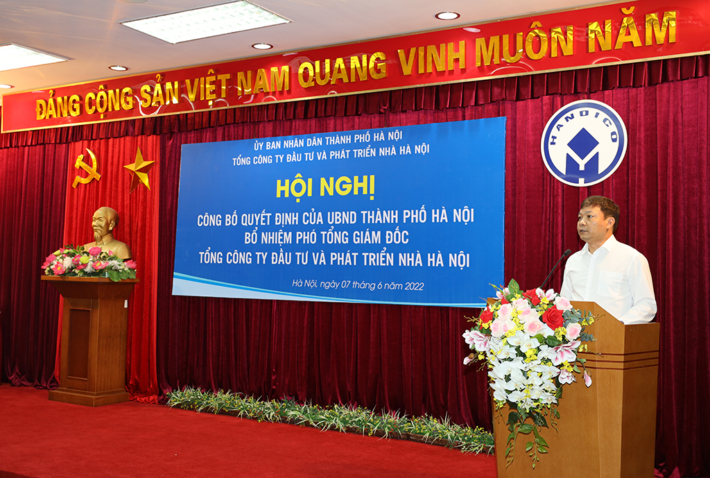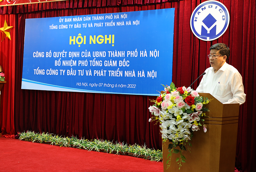 (HANDICO) – Ngày 07/6/2022, Tổng công ty Đầu tư và Phát triển nhà Hà Nội (HANDICO) tổ chức Hội nghị công bố quyết định của UBND Thành phố Hà Nội bổ nhiệm Phó Tổng Giám đốc Tổng công ty. Đồng chí Dương Đức Tuấn – Thành ủy viên, Phó Chủ tịch UBND Thành phố Hà Nội đã tới dự và phát biểu ý kiến chỉ đạo.