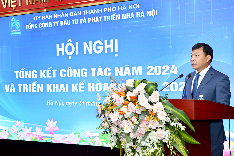 Phát biểu tại Hội nghị, đồng chí Dương Đức Tuấn - Ủy viên Ban Thường vụ Thành ủy, Phó Chủ tịch UBND Thành phố Hà Nội biểu dương Tổng công ty Đầu tư và Phát triển nhà Hà Nội đã nỗ lực hoàn thành vượt mức các chỉ tiêu kế hoạch SXKD năm 2024 đề ra, với các chỉ tiêu chính như giá trị SXKD, doanh thu, nộp ngân sách, lợi nhuận đều đạt cao so với kế hoạch. Nhiều công trình, dự án trọng điểm được tập trung chỉ đạo triển khai bảo đảm tiến độ, chất lượng. Công tác quản lý vận hành sau đầu tư cũng được thực hiện tốt tại các tòa nhà, khu chung cư, góp phần ổn định, nâng cao cuộc sống cộng đồng dân cư.
