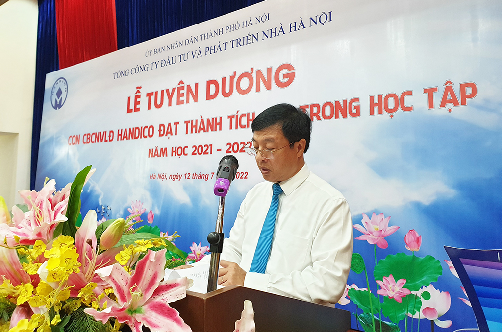 Phát biểu tại Lễ tuyên dương, thay mặt lãnh đạo Tổng công ty, đồng chí Phan Thanh Chung - Phó Bí thư Đảng ủy, Thành viên Hội đồng thành viên, Chủ tịch Công đoàn HANDICO chúc mừng thành tích đáng tự hào của các cháu học sinh. Đồng chí hy vọng các học sinh tiêu biểu được tuyên dương nhân dịp này sẽ tiếp tục là những tấm gương sáng về thành tích trong học tập, không ngừng rèn luyện phấn đấu vươn lên, vượt qua những hoàn cảnh khó khăn để trở thành những công dân tốt, những chủ nhân tương lai đầy trí tuệ của đất nước.