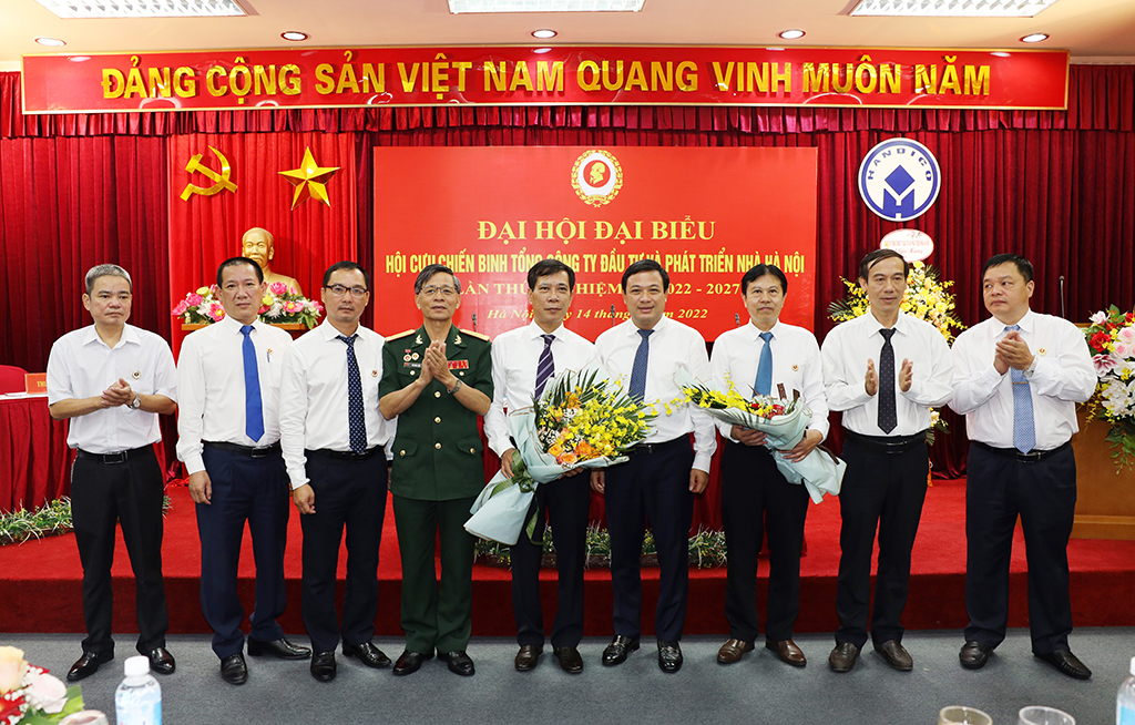 Đồng chí Vũ Đình Liễu -  Trưởng ban Tổ chức Chính sách, Hội cựu chiến binh Thành phố Hà Nộiđồng chí Ngô Minh Tuấn - Ủy viên Ban thường vụ, Chủ nhiệm UBKT Đảng ủy, Thành viên HĐTV, Phó Tổng giám đốc Tổng công ty tặng hoa chúc mừng Ban chấp hành HCCB Tổng công ty nhiệm kỳ IV (2022-2027)