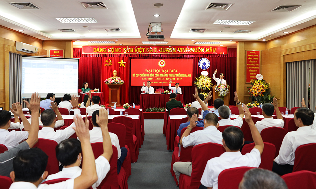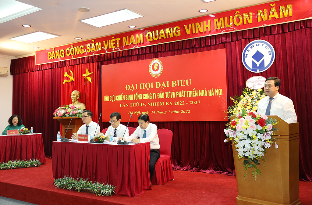 (HANDICO) - Ngày 14/7/2022, Hội cựu chiến binh Tổng công ty Đầu tư và Phát triển nhà Hà Nội (HANDICO) tổ chức Đại hội đại biểu Hội Cựu chiến binh Tổng công ty lần thứ IV, nhiệm kỳ 2022-2027. Tới dự có đồng chí Vũ Đình Liễu -  Trưởng ban Tổ chức Chính sách, Hội cựu chiến binh Thành phố Hà Nội; các đồng chí trong ban lãnh đạo Tổng công ty và sự tham gia của 53 đại biểu đại diện cho gần 140 hội viên đang sinh hoạt tại 8 hội cơ sở trực thuộc Hội cựu chiến binh Tổng công ty.