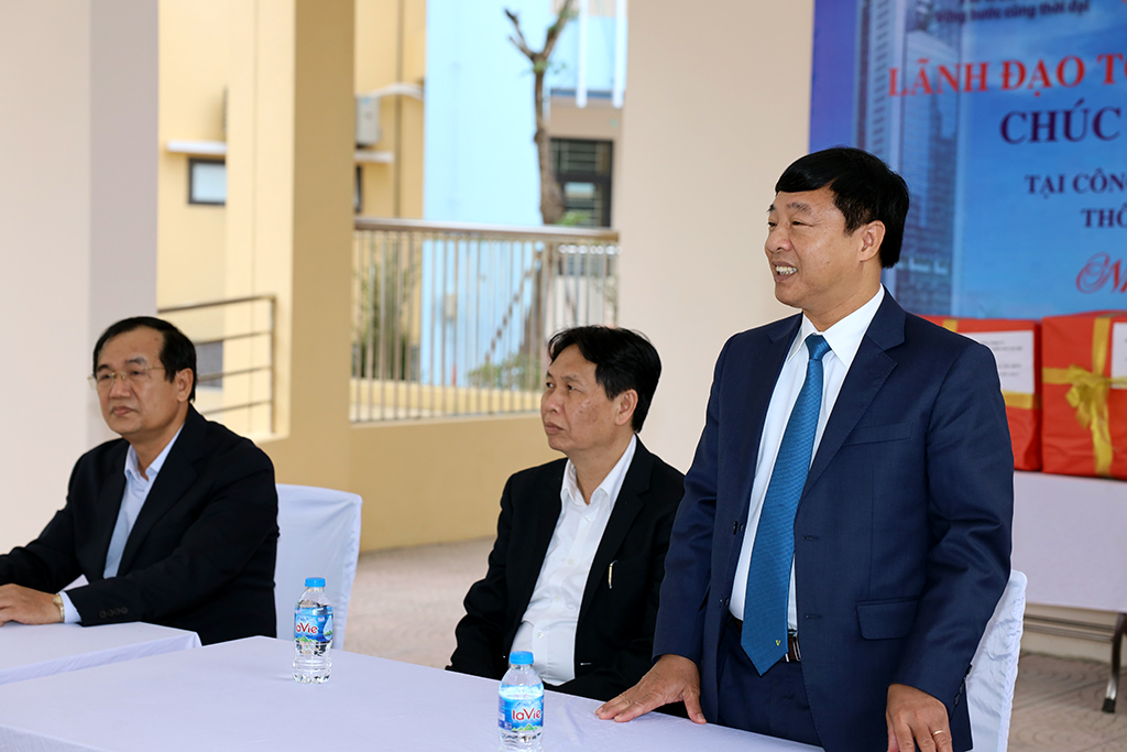 Tới thăm và chúc Tết cán bộ, công nhân viên, lao động đang làm việc tại đây, đồng chí Phan Thanh Chung – Phó Bí thư Đảng ủy, Thành viên HĐTV, Chủ tịch Công đoàn Tổng công ty chúc lãnh đạo, cán bộ nhân viên và người lao động đón Tết vui vẻ, hạnh phúc, an khang thịnh vượng, đầm ấm bên gia đình. Thay mặt lãnh đạo Tổng công ty, đồng chí cảm ơn và biểu dương những nỗ lực của các cán bộ, công nhân viên, lao động các đơn vị thi công đã hoàn thành xuất sắc các hạng mục công trình đảm bảo an toàn, chất lượng, góp phần nâng cao thương hiệu của Tổng công ty trong lĩnh vực thi công xây lắp.