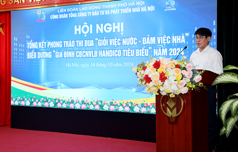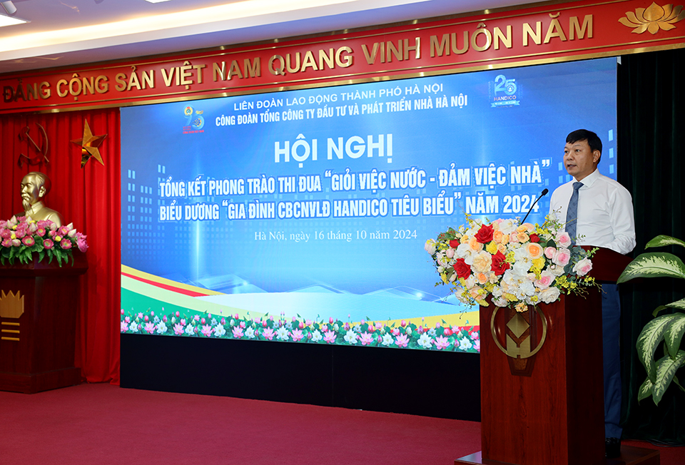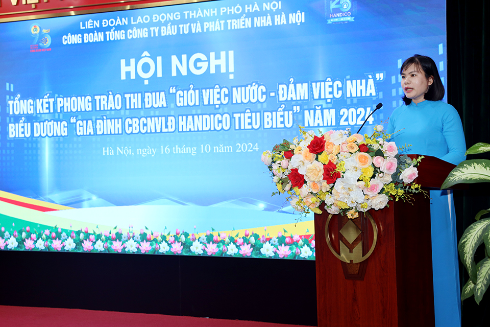 Phát biểu tại Hội nghị, đồng chí Trương Hải Long - Bí thư Đảng ủy, Chủ tịch Hội đồng thành viên HANDICO tri ân những đóng góp của đội ngũ nữ CBCNVLĐ vào thành tích rất đáng tự hào trên suốt hành trình 25 năm xây dựng và phát triển của Tổng công ty. Đồng chí ghi nhận phong trào“Giỏi việc nước - Đảm việc nhà”, “Gia đình HANDICO tiêu biểu” đã có tác động mạnh mẽ trong việc xây dựng và nâng cao chất lượng đội ngũ nữ CBCNVLĐ, khơi dậy nội lực, trách nhiệm của nữ CBCNVLĐ đối với sự tiến bộ phát triển của bản thân, gia đình và cộng đồng. Thông qua việc tổ chức các phong trào thi đua đã xuất hiện nhiều tập thể, gương điển hình tiên tiến. Các phong trào thi đua nổi bật như: “Người tốt việc tốt” “Công nhân giỏi”, “Giỏi việc nước - Đảm việc nhà”... cùng nhiều phong trào thi đua khác đã góp phần quan trọng thúc đẩy hoạt động sản xuất kinh doanh của các đơn vị thành viên. Những kết quả đã đạt được có sự nỗ lực phấn đấu không ngừng của đội ngũ cán bộ đoàn viên công đoàn, người lao động; khẳng định vai trò, trách nhiệm to lớn của tổ chức Công đoàn đối với sự nghiệp phát triển chung của Tổng công ty.
