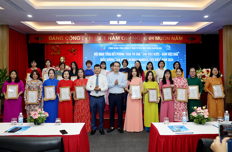 Kết quả, năm 2024, có trên 80% nữ CBCNVLĐ Tổng công ty đạt danh hiệu “Giỏi việc nước - Đảm việc nhà” cấp cơ sở; 33 tập thể, 61 nữ CBCNVLĐ đạt danh hiệu “Giỏi việc nước - Đảm việc nhà” cấp Tổng công ty. Hơn 300 gia đình đạt danh hiệu “Gia đình tiêu biểu” cấp cơ sở, 59 gia đình đạt danh hiệu “Gia đình CBCNVLĐ HANDICO tiêu biểu”, 01 tập thể được Liên đoàn Lao động Thành phố khen thưởng chuyên đề “Giỏi việc nước - Đảm việc nhà” và 01 gia đình đoàn viên Công đoàn đạt danh hiệu “Gia đình CNVCLĐ Thủ đô tiêu biểu”.