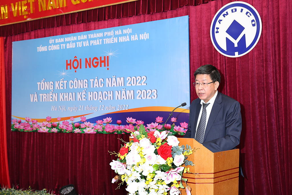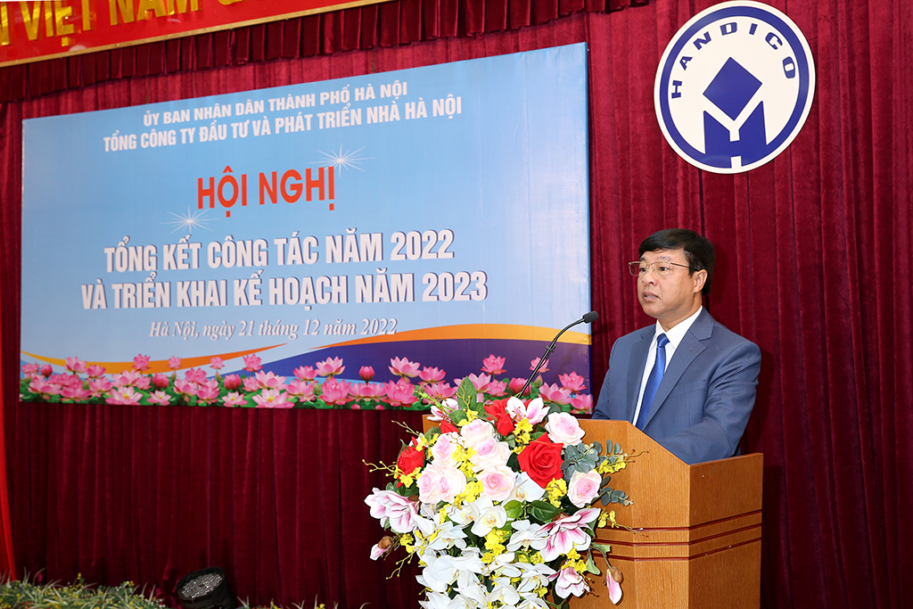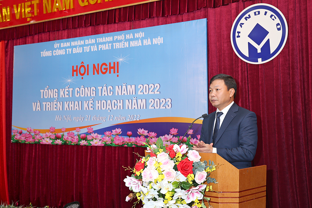 Thay mặt lãnh đạo TP phát biểu chỉ đạo, Phó Chủ tịch UBND TP Dương Đức Tuấn biểu dương kết quả đạt được của Tổng công ty năm 2022. Trong bối cảnh rất nhiều khó khăn thách thức do dịch Covid-19, HANDICO đã nỗ lực hoàn thành vượt mức các chỉ tiêu kế hoạch SXKD đề ra, với những chỉ tiêu chính là giá trị SXKD, doanh thu, nộp ngân sách, lợi nhuận, thu nhập bình quân đều đạt kết quả khả quan. Tình hình tài chính các đơn vị ổn định; nhiều công trình, dự án trọng điểm có ý nghĩa CT-KT-XH trên địa bàn Thủ đô được Tổng công ty tập trung chỉ đạo triển khai đảm bảo tiến độ, chất lượng, ATLĐ, VSMT, phòng chống cháy nổ…