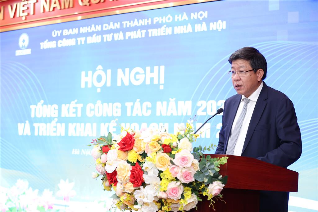 Thay mặt lãnh đạo TP Hà Nội phát biểu chỉ đạo tại Hội nghị, đồng chsi Dương Đức Tuấn - Ủy viên Ban Thường vụ Thành ủy, Phó Chủ tịch Thương trực UBND TP Hà Nội bày tỏ rất phấn khởi khi Tổng công ty Đầu tư và Phát triển nhà Hà Nội đã nỗ lực hoàn thành vượt mức các chỉ tiêu kế hoạch đề ra. Tình hình tài chính các đơn vị cơ bản ổn định; nhiều công trình, dự án trọng điểm được Tổng công ty tập trung chỉ đạo triển khai bảo đảm tiến độ, chất lượng, an toàn lao động, vệ sinh môi trường, phòng chống cháy nổ. Trong công tác quản lý vận hành sau đầu tư, Tổng công ty thực hiện tốt tại các tòa nhà, khu chung cư, góp phần ổn định, nâng cao cuộc sống của cộng đồng dân cư.