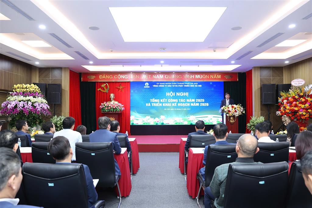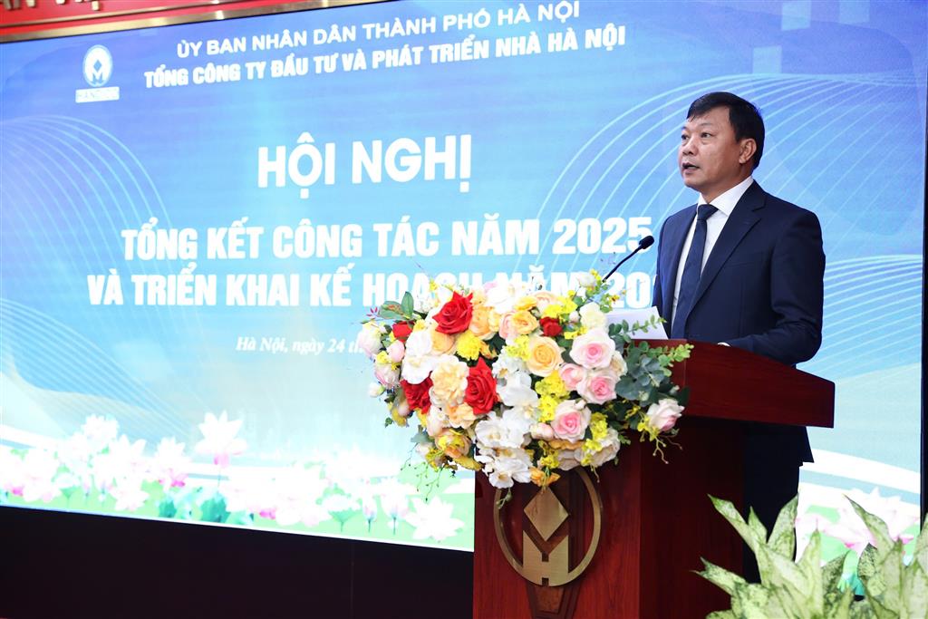 “Đặc biệt, năm 2025, nhiều công tác trọng tâm đã được Tổng công ty tổ chức thực hiện, hoàn thành đúng kế hoạch đề ra, như: xây dựng chiến lược, kế hoạch đầu tư phát triển 5 năm (2026-2030) của Công ty mẹ; hoàn thiện, đưa vào sử dụng Hệ thống phần mềm quản lý doanh nghiệp của cơ quan Công ty mẹ; hoàn thành bàn giao cho Trung tâm Quản lý nhà TP Hà Nội công tác quản lý, vận hành, khai thác, bảo trì 22 tòa chung cư thuộc Khu đô thị Nam Trung Yên; ban hành kế hoạch tổ chức triển khai thực hiện Đề án cơ cấu lại Tổng công ty giai đoạn đến hết năm 2025 và những năm tiếp theo…”- đồng chí Dương Đức Tuấn nói.